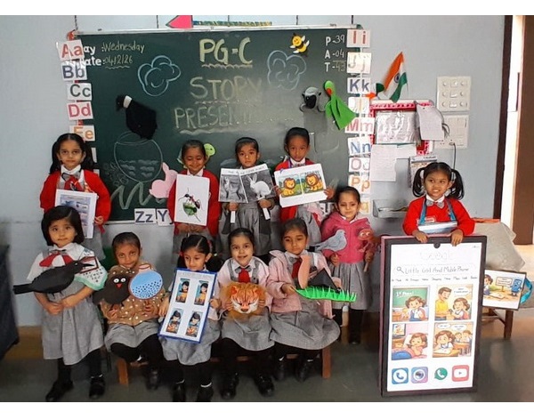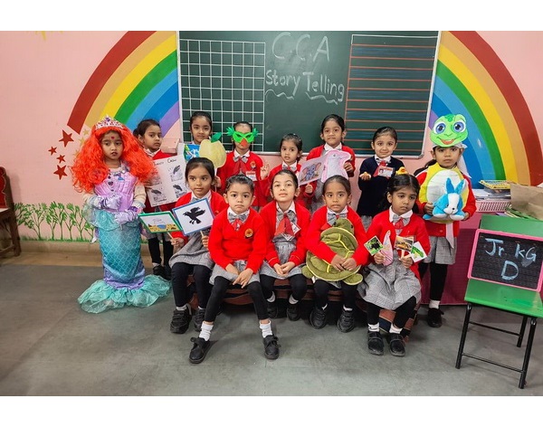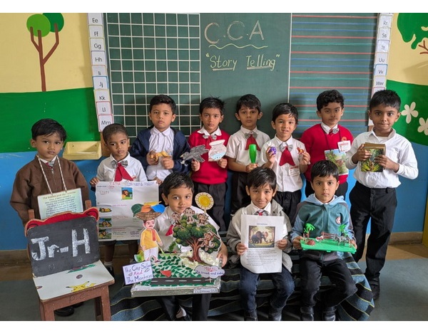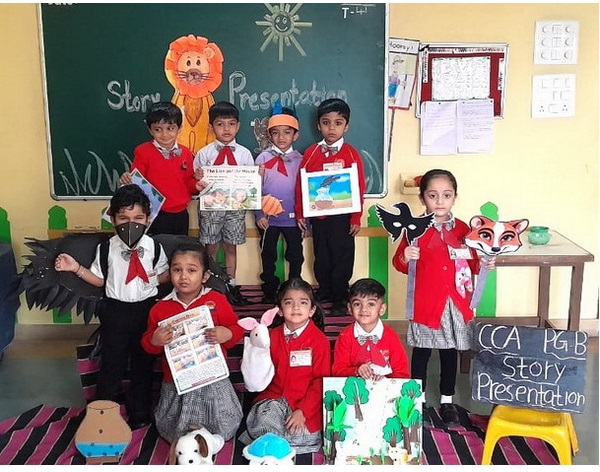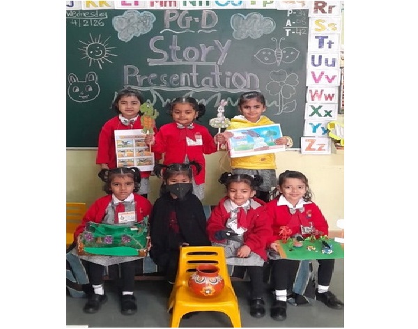 Story presentation is a fun and interactive activity for children. Children narrated a simple story by using colourful props like puppets, masks, flashcards, etc. Story telling helps children to develop language, imagination, confidence, memory, and thinking skills. It also supports their emotional and social development.