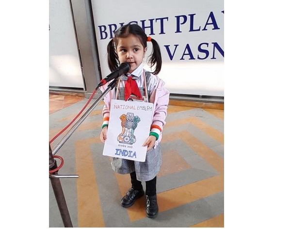 Children confidently spoke a few lines about the National Symbols of our country, India. They spoke about the National Flag – Tiranga, the National Animal – Bengal Tiger, the National Bird – Indian Peacock, and the National Flower – Lotus etc. with simple sentences and colourful props. They expressed their love, respect and awareness for their nation. This activity helped develop their speaking skills and confidence.