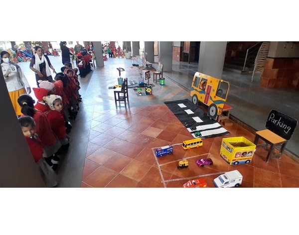 Children learnt different means of transportation like Land, Air and Water through display. It helped children understand about road safety, precautions and traffic signals through displays of Airport and water vehicles on Vehicle Day. They learnt more about land, air and water vehicles too.