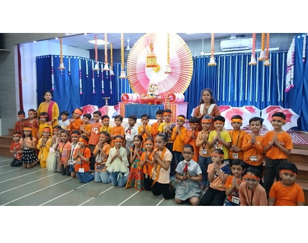 Our school celebrated Ganesh Utsav with joy and devotion. Dressed in bright orange, the children chanted “Ganpati Bappa Morya” with enthusiasm and sought the blessings of Vighnaharta. The celebration created an atmosphere of faith, festivity, and togetherness.