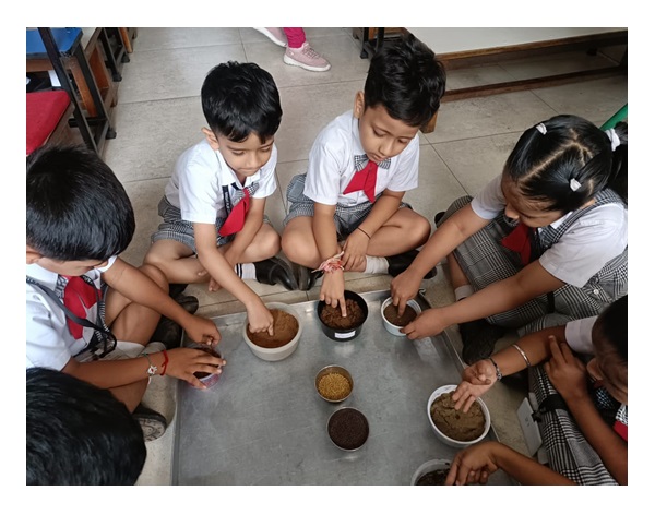 To observe and understand the process of seed growth" Germination "activity was conducted. Children planted seeds in bowls which they brought and monitored their growth over a period of time. They also understood the importance of 'Grow More Trees".