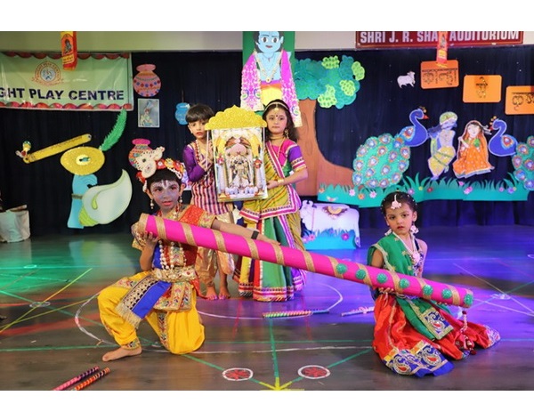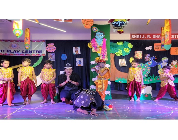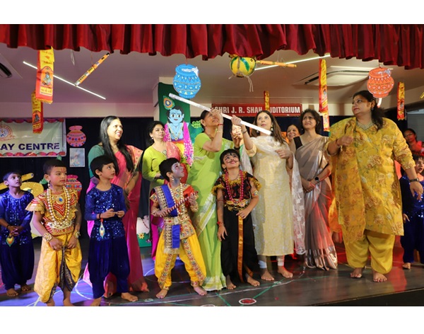 Children celebrated Janmashtami with great enthusiasm and zest. Children performed a stage show depicting Krishna's life and also enjoyed matki fod. Children also performed a skit with different leela such as Krishna' s birth, Naagdaman, Govardhan Parvat leela etc. They have also understood the importance of " Bhagwat Geeta".