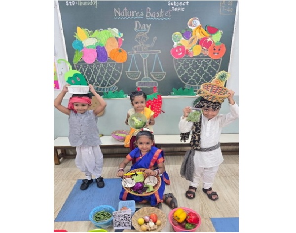Our kindergarten children celebrated Nature’s Basket Day with excitement and creativity. Dressed up as green grocers and vegetable vendors, the little ones confidently spoke about fruit and vegetable, learning new words and healthy habits. The activity not only enhanced their speaking skills but also gave them awareness about the importance of fruits and vegetables in our daily life. The celebration concluded on a delicious note as the children happily enjoyed a bowl of fresh fruit chaat, making the day both fun and nutritious.