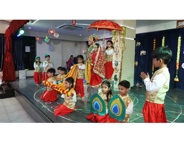 Children of Sr KG F presented a stage show on Lord Krishna, they performed different leelas of Lord Krishna through dance performances, colourful costumes made it eye catching. Parents enjoyed the show.