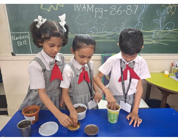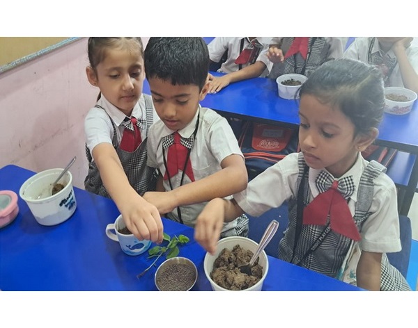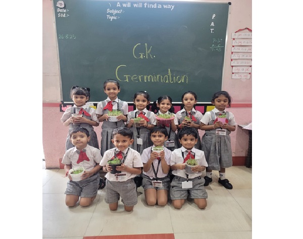 To observe and understand the process of seed growth" Germination "activity was conducted. Children planted seeds in bowls which they brought and monitored their growth over a period of time. They also understood the importance of 'Grow More Trees".