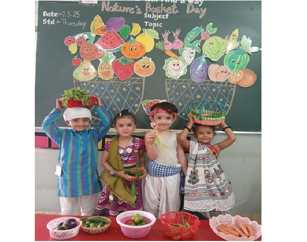 Our kindergarten children celebrated Nature’s Basket Day with excitement and creativity. Dressed up as green grocers and vegetable vendors, the little ones confidently spoke about fruit and vegetable, learning new words and healthy habits. The activity not only enhanced their speaking skills but also gave them awareness about the importance of fruits and vegetables in our daily life. The celebration concluded on a delicious note as the children happily enjoyed a bowl of fresh fruit chaat, making the day both fun and nutritious.