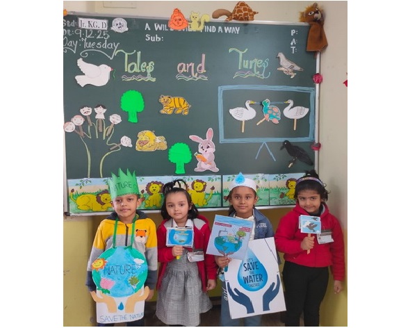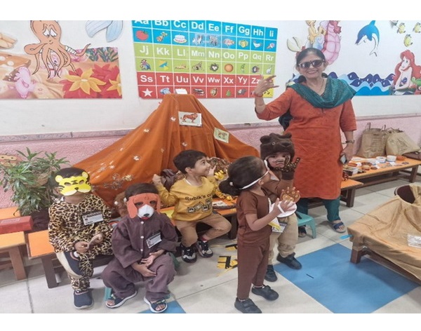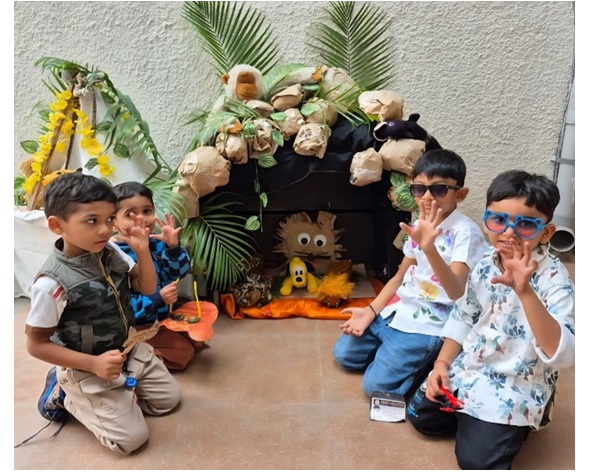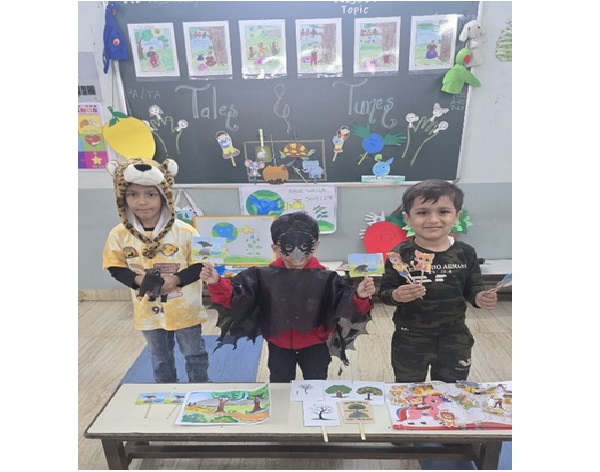 The young learners showcased delightful stories, rhymes, and moral tales from Panchatantra, mythology, and themes promoting environmental care. They brought their ideas to life using finger and glove puppets, stick puppets, calendar visuals, and TV-style displays. These creative activities encouraged the children to express themselves confidently, sparked their imagination, nurtured good values, and raised awareness about caring for the environment.