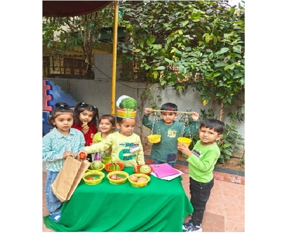 Vegetables are jam packed with health benefits. They are most essential part of our diet. Children enjoyed learning about the vegetables through real veggies as a vendor was called in the school. Children dressed up as little vendors added more joy to it.